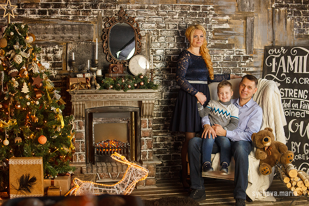 Семейная новогодняя фотосессия в студии