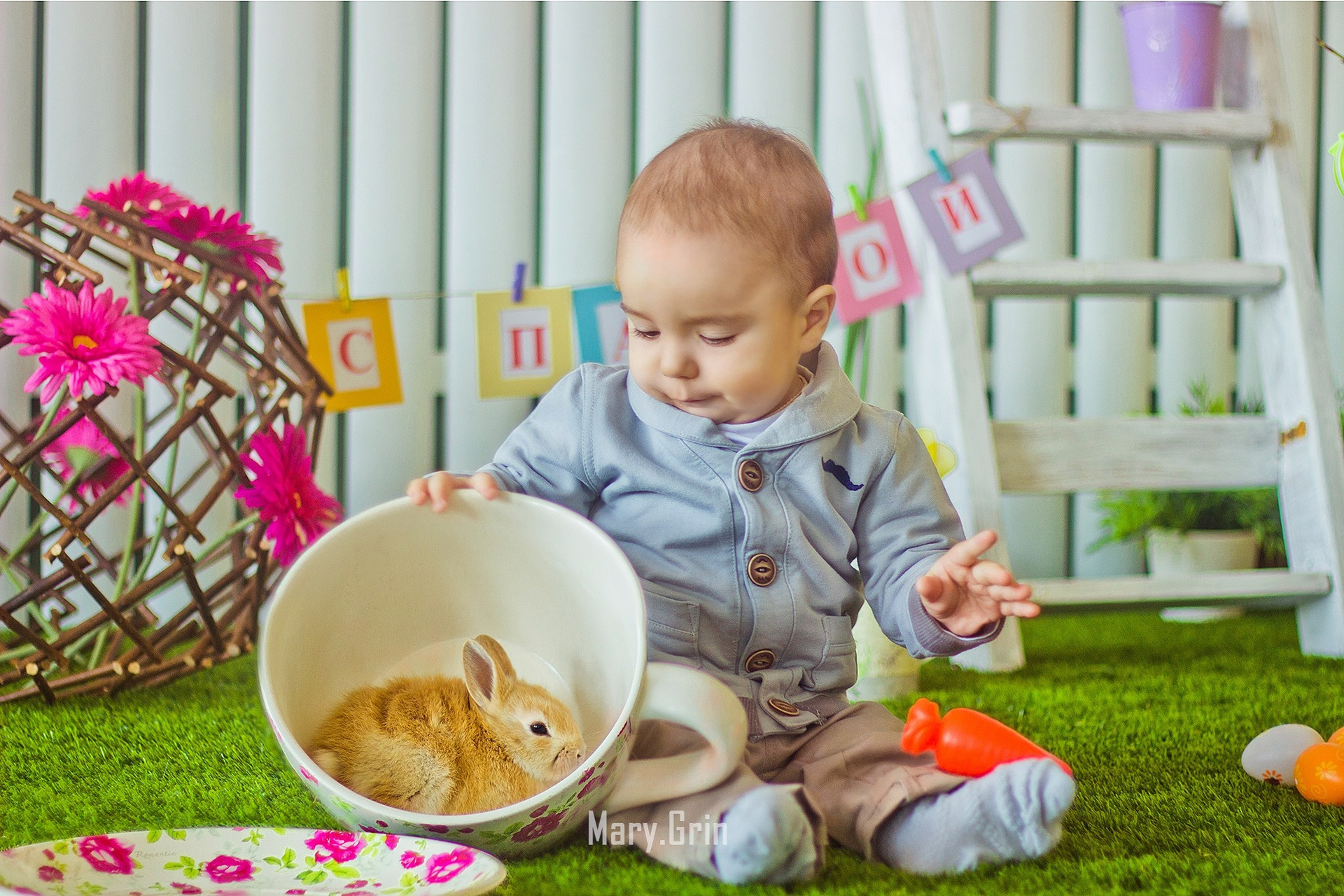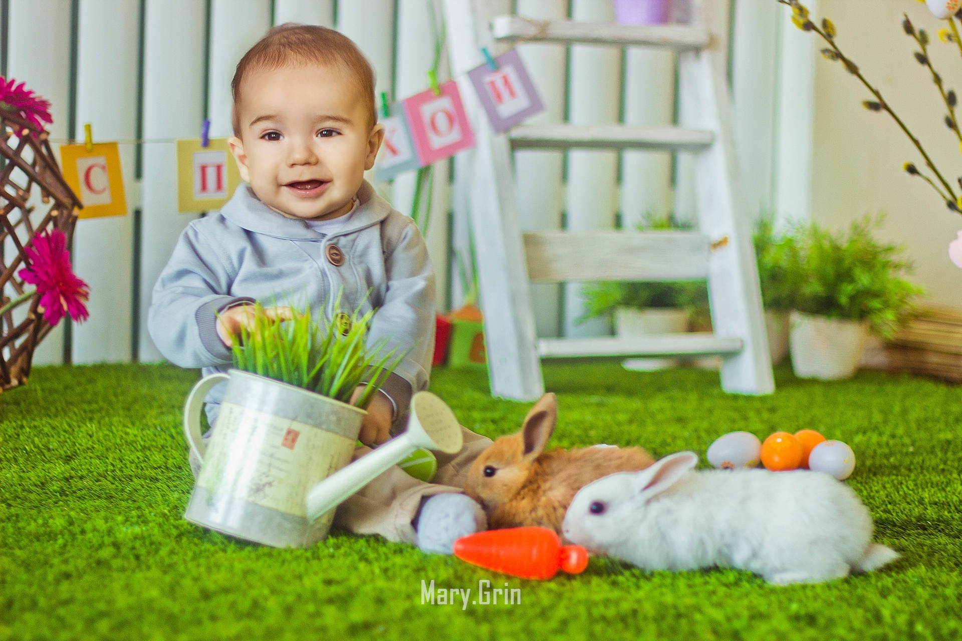 Пасхальная фотосессия с кроликом в студии